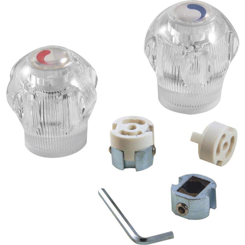 1 pair, Hot and Cold. Includes new universal vise grip style adapter that offers better grip and does not strip out stem. Spaces to accommodate both shallow and deep broach needs. Comes with adapters, spacers, and wrench.