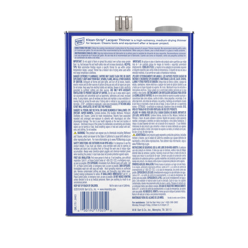 For Pro’s and DIY’ers, Klean-Strip® is the leading brand of solvents, thinners, removers, and cleaners that are dependable for reliable results. Klean-Strip® Lacquer Thinner is a high-solvency, medium-drying thinner for lacquer. Cleans tools and equipment after a lacquer project. Keep out of reach of children. Not for sale in California.
